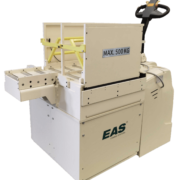 I metodi di trasferimento degli stampi variano in base alle dimensioni degli stampi, da manuali a completamente automatizzati. Gli stampi vengono posizionati in modo rapido e preciso con i nostri sistemi di trasferimento degli stampi. I carrelli mobili per il cambio degli stampi offrono ancora più flessibilità.